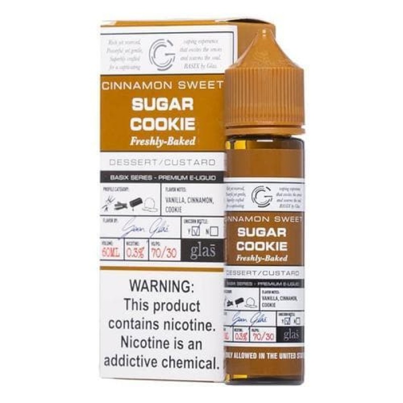 Attention all dessert lovers! This Sugar Cookie eJuice by Basix is a must-try juice! With a brilliant concoction of warm buttery sugar cookie coated in brown sugar and sprinkled in cinnamon and nutmeg, you can not go wrong with this impeccable vapable dessert juice. Experience the great taste without feeling guilty of any calories!